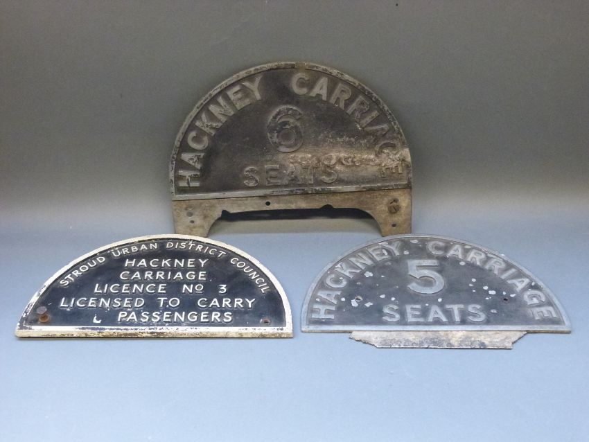Stroud Urban District Council Hackney Carriage licence plate and two further plates, one 6 the other 5 seats
