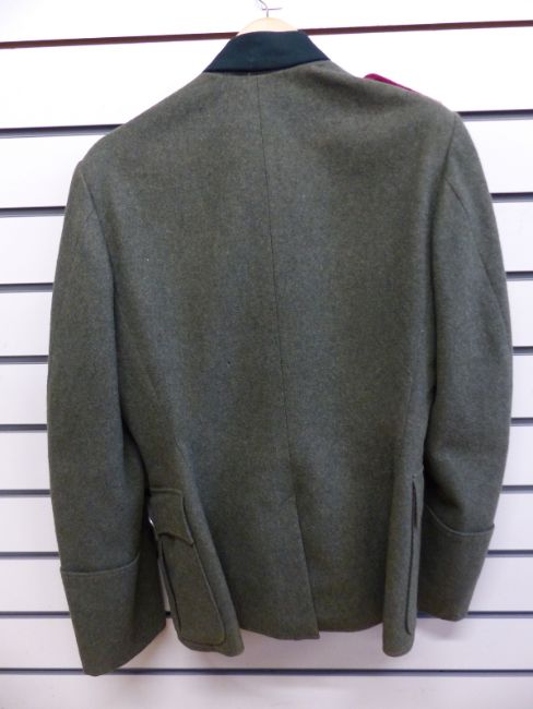 A WWII Nazi German officers tunic, the shoulder boards with pink border and two rank stars, silver wire eagle to the breast, named to inside Karl Thorn and label with owner's name and date 1942.