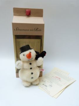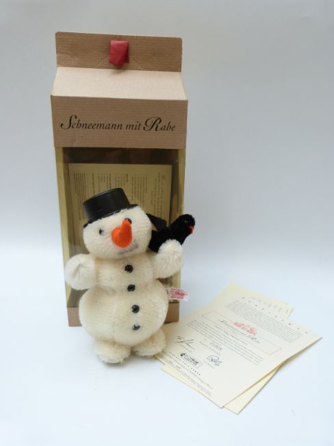 Steiff Original 'Snowman' 037962 teddy bear, with white mohair, button to ear, tags and certificate, limited edition 1905/3000, 18cm tall, in original snap close box