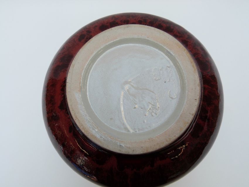 Cobridge Stoneware Ruskin style high fired vase with speckled red glaze (19cm tall)