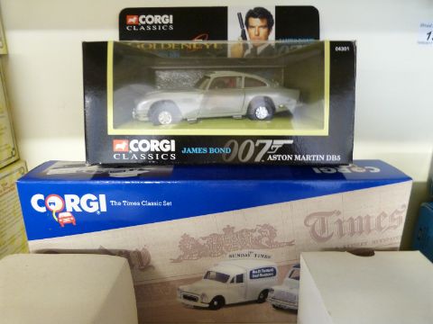 Six Corgi diecast model vehicles and vehicle sets including James Bond Goldeneye, The Sunday Times, etc, all in original boxes