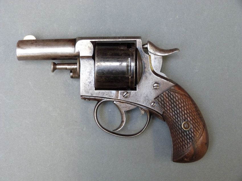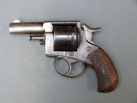 Belgian W. Moore & Co retailed .44 centre fire five shot revolver with chequered grips and 2.5 inch barrel engraved "Dead Shot' CF .44 W.Moore & Co', NVSN, overall length 18cm.