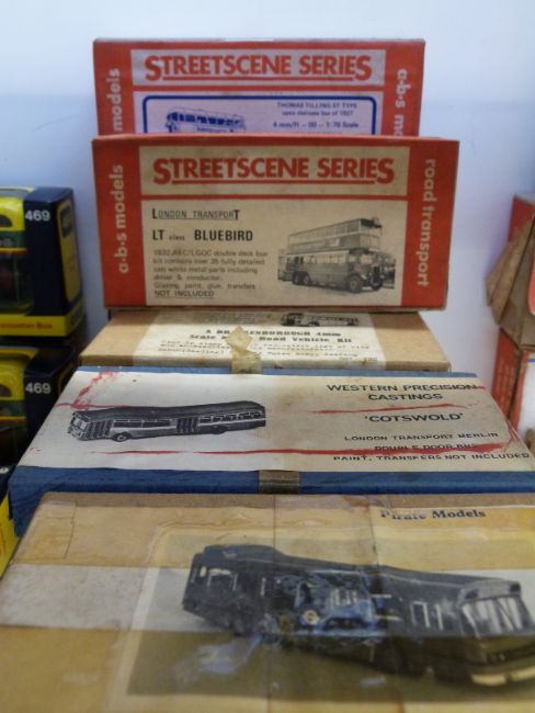 Approximately 20 white metal kit built model buses