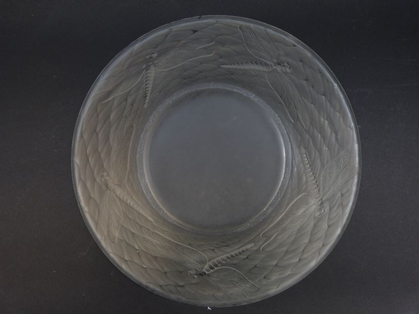 A frosted glass dish decorated with a dragonfly, diameter 28cm