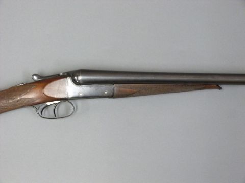 Ellis Brothers 12 bore side by side shotgun with chequered grip and forend, double trigger and 28 inch barrels engraved 'Ellis Bros Makers St Mary's Square Birmingham', overall length 113cm, serial number 579. PLEASE NOTE THAT A VALID RELEVANT FIREARMS/SHOTGUN CERTIFICATE IS REQUIRED TO HANDLE/PURCHASE THIS ITEM.