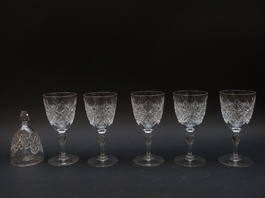 Six Thomas Webb cut crystal wine glasses with bulbous stems