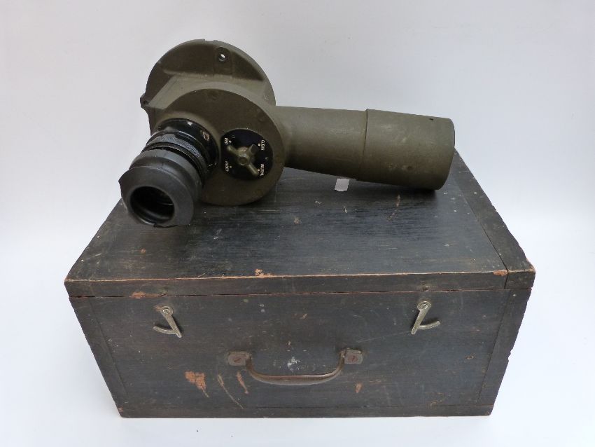 A WWII tank gun sight / periscope in case with three lenses