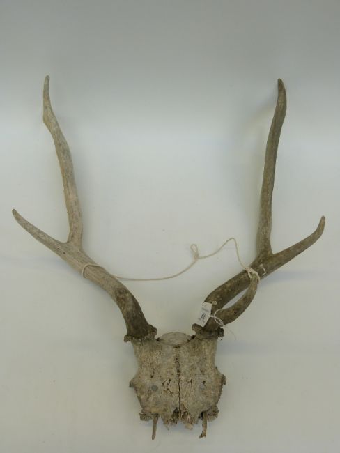 A pair of 12 point fallow deer antlers on skull mount, 60cm long