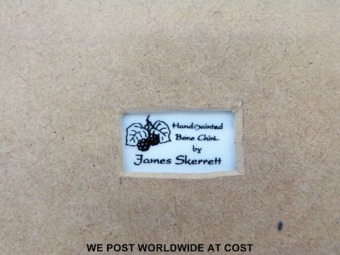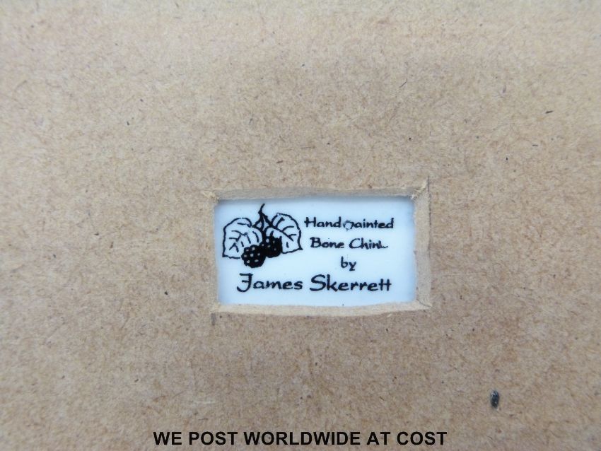 A porcelain plaque hand decorated with a polar bear by James Skerrett, ex Royal Worcester artist (12x17cm)