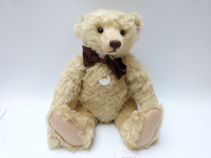 Steiff Original 'Gallery Bear' 672583 teddy bear 2007, with blonde mohair, button to ear, tags and certificate, limited edition 61/1000, 45cm tall, in original cloth bag