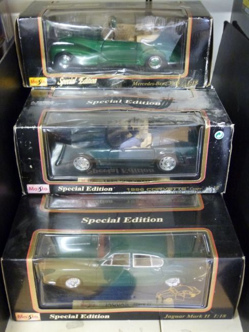 Six Maisto 1:18 scale diecast model cars including some special editions, all in original boxes