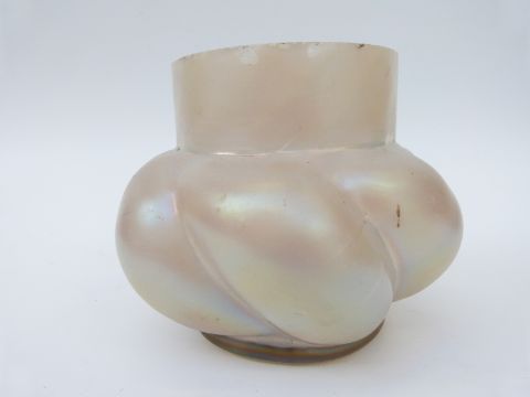 A Loetz / Kralic style squat wrythen lobed vase, 12.5cm tall