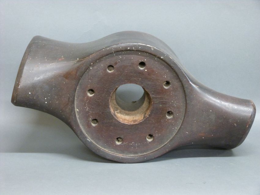 A WWI / early 20th century wooden aircraft propeller centre with various impressed marks. DRG No P 3033/11 R R FALCON 3, BRISTOL RIGHT, further impressed to face 21259, length 50cm, width 16cm