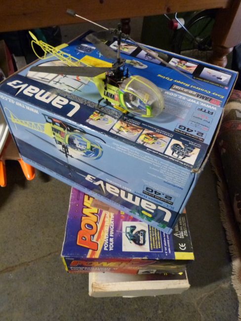 Five radio control model aircraft includes B-29 Super Fortress, Precedent trainer, E-sky helicopters etc