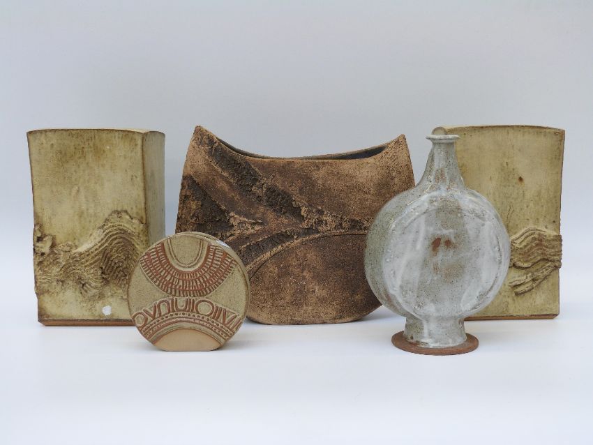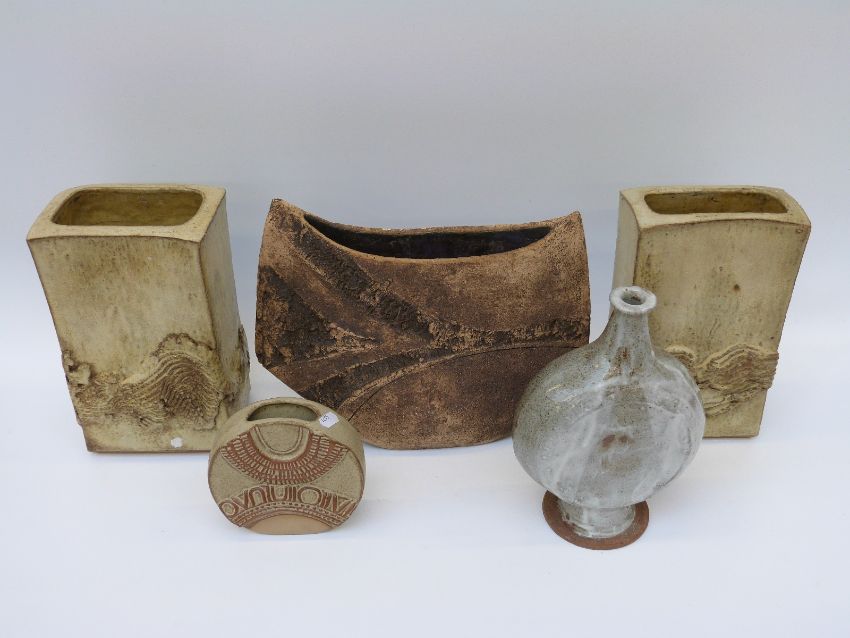 Five pieces of studio pottery to include vases etc (largest 27cm tall)
