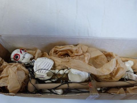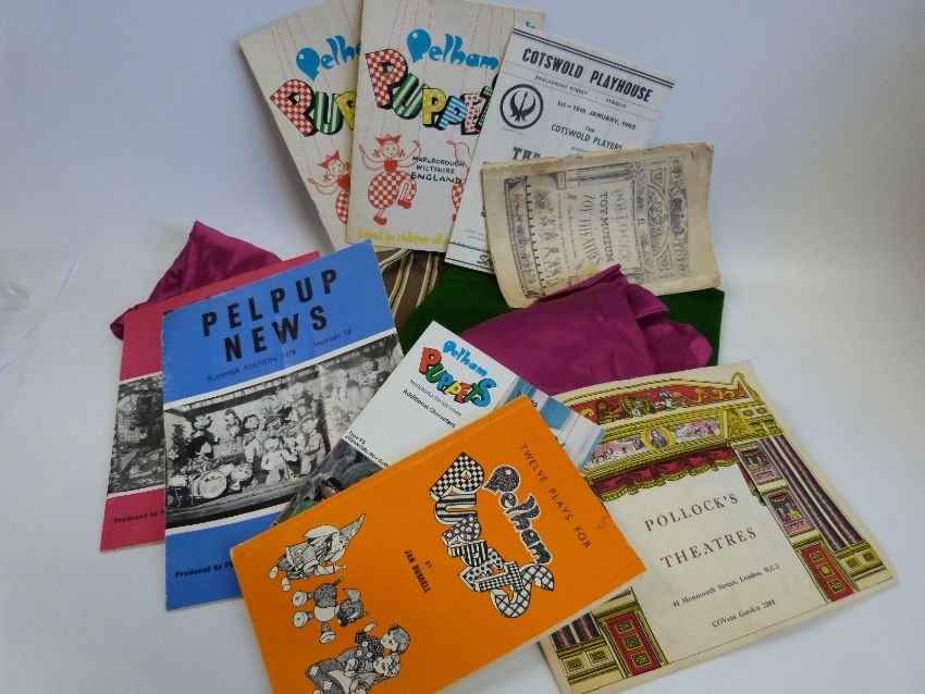 A collection of Pelham Puppets comprising Foal, Skeleton, Ventriloquial Puppet, Dutch Girl, and Tyrolean Boy, all in original boxes, together with related ephemera and theatre materials,