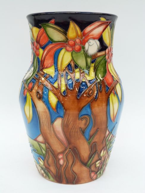 Moorcroft vase in Aquitaine pattern by Emma Bossons, limited edition no. 34 of 250 (24cm tall)