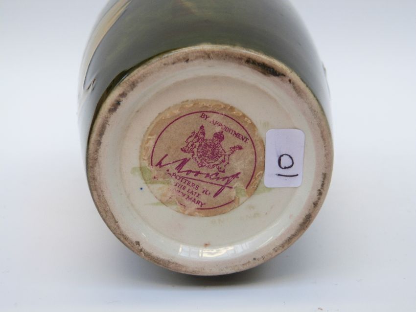 Moorcroft vase in Hibiscus pattern by Walter Moorcroft with light flambe glaze (18cm tall)