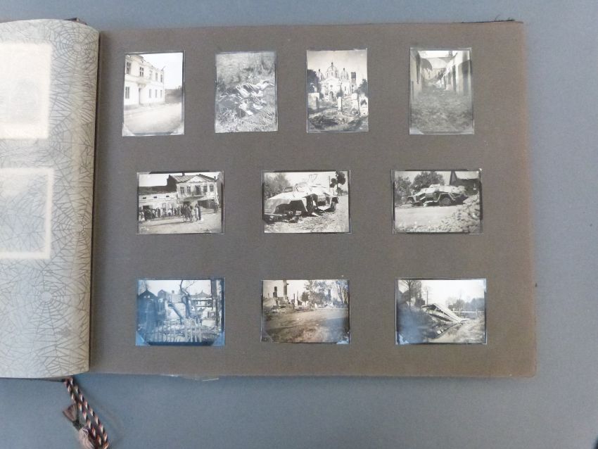 WWII Nazi German photo album with 200 photographs of a mechanised unit serving in Holland, Belgium and France, including tanks, aircraft, damaged vehicles etc