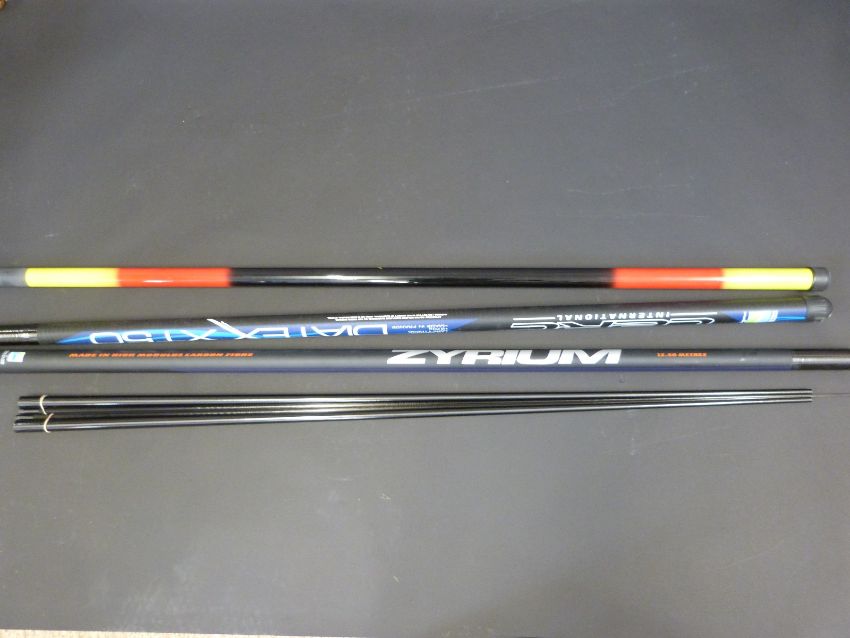 Preston Innovations 12.5m Zyrium pole, Diatex XT50 13m pole and an X Technique pole
