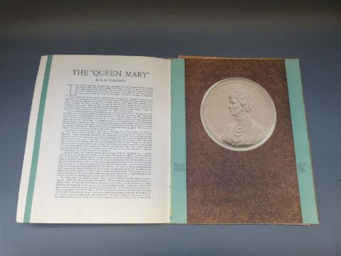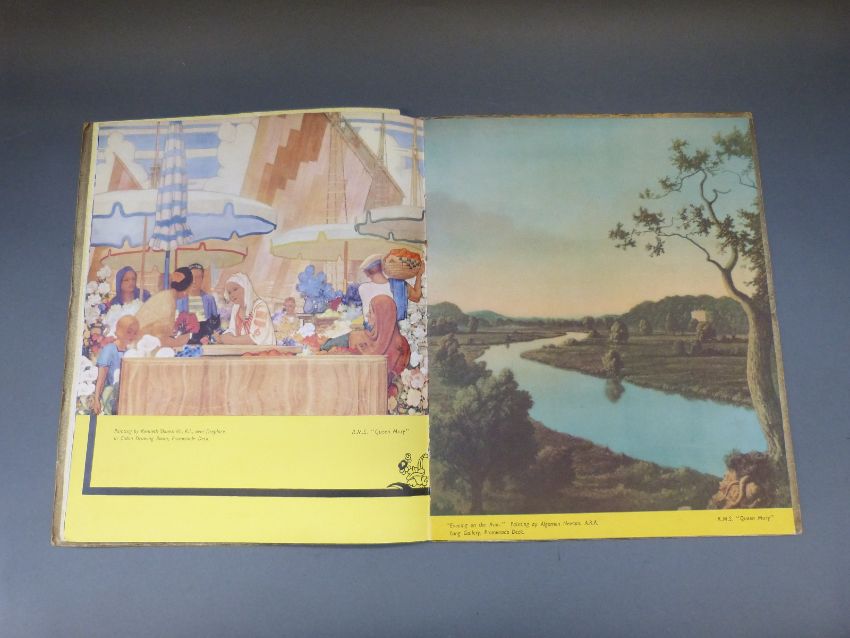 A Cunard RMS "Queen Mary" 1934 brochure together with two Cunard white star postcards one of the Ascania the other the Queen Mary