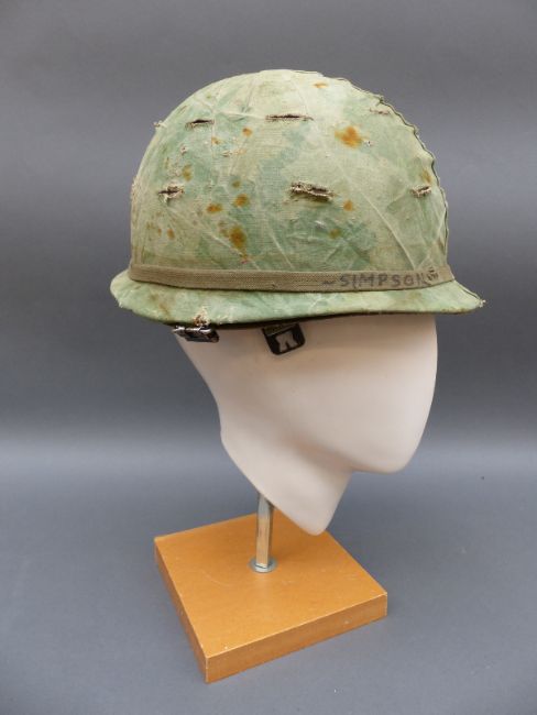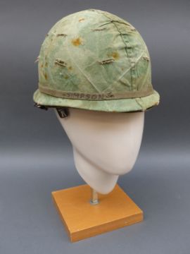 Two American Vietnam era military helmets, one dated 1966