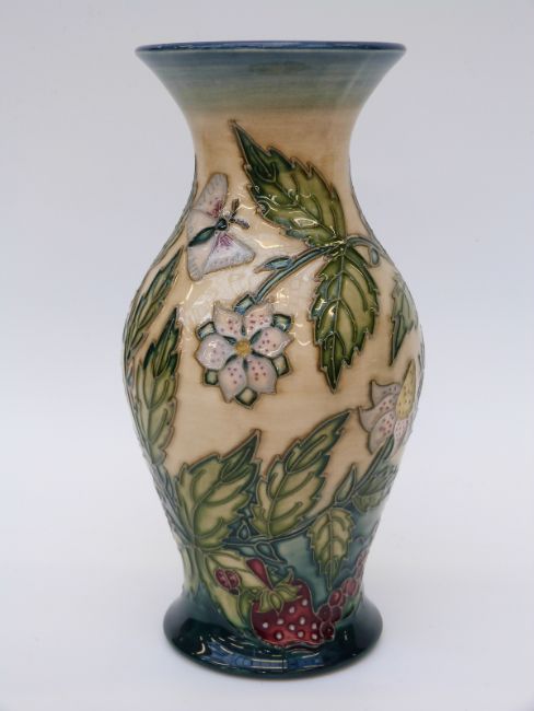 Moorcroft vase in Fruit Garden pattern by Nicola Slaney (19.5cm tall)