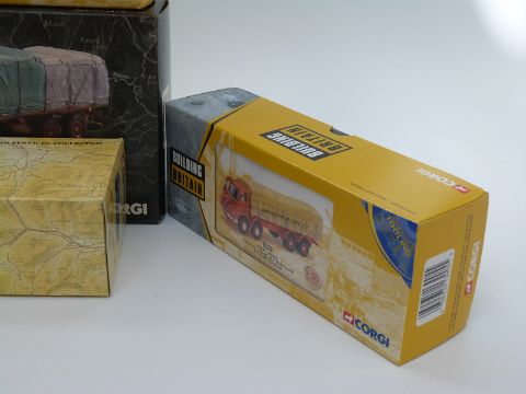 Five Corgi British Road Transport and Building Britain diecast model lorries Scammel Crusader CC12603, Ford Transcontinental 23001, Guy Invincible 8-Wheel Platform Lorry 29104, Foden S21 13905 and AEC Dropside 21501, all in original boxes