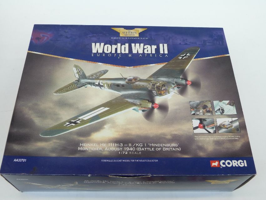 Two Crogi The Aviation Archive limited edition 1:72 scale diecast model aircraft Junkers Ju88A-10 AA 36701 and Heinkel HE 111H3 AA33701, both in original boxes