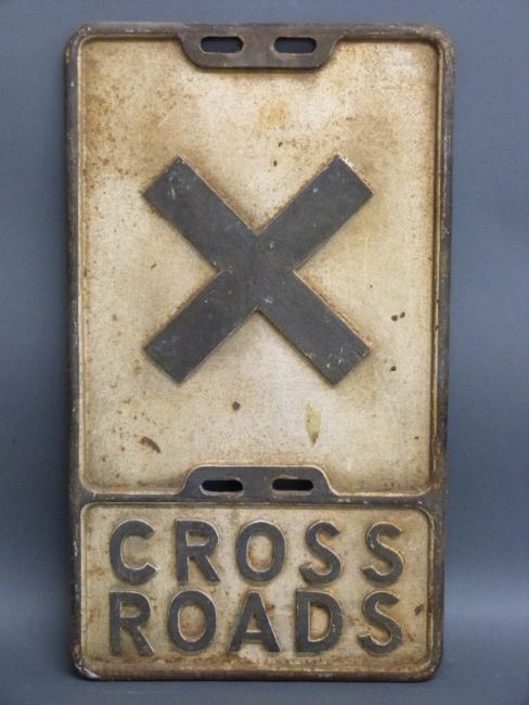 A vintage cast iron 'cross roads' sign, 53.5 x 31cm