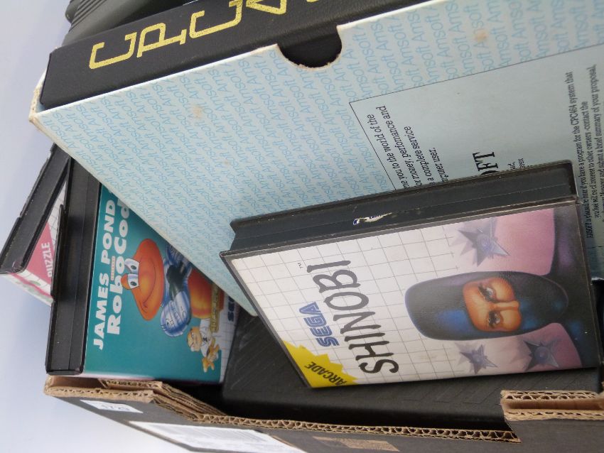 Amstrad CPC 464 computer system with CTM 640 monitor, instruction booklet and a quantity of tapes, together with four Sega Games Aladdin, Lemmings, James Pondz, and Shinobi