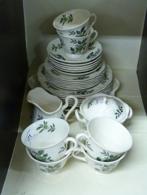 Wegdwood Barlaston Green Leaf pattern tea service, 27 pieces