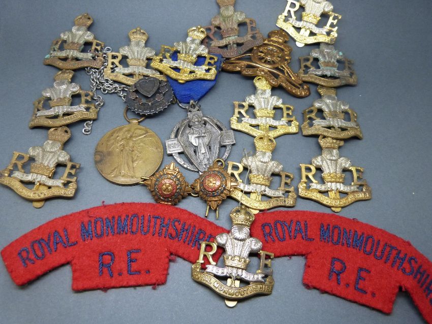 A quantity of cap badges, a hallmarked silver Masonic medal and a WWI medal awarded to 49988 Pte W W Howells, Welsh R