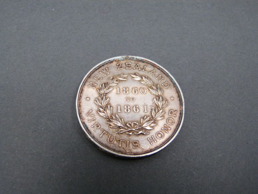 A Victorian New Zealand Virtutis Honor 1860-1861 medal marked to rim E.B. Wadlow Midmn H.M.S. Pelorus