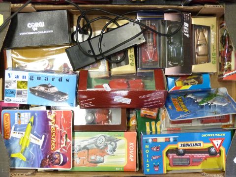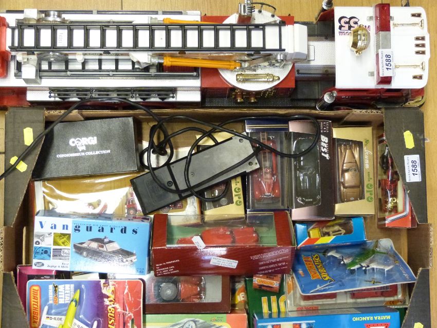 Over 20 Corgi, Matchbox, Vanguards, Dinky and similar diecast model vehicles, all in original boxes together with a large scale remote control fire engine