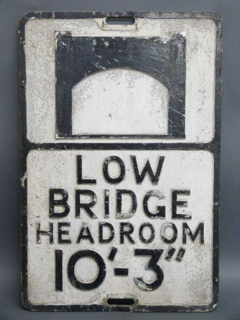 A vintage cast aluminium 'low bridge' road sign, 53.5 x 35.5cm
