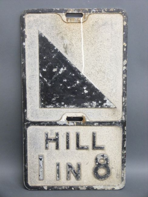 A vintage cast aluminium 'hill 1 in 8' road sign, 54 x 30.5cm