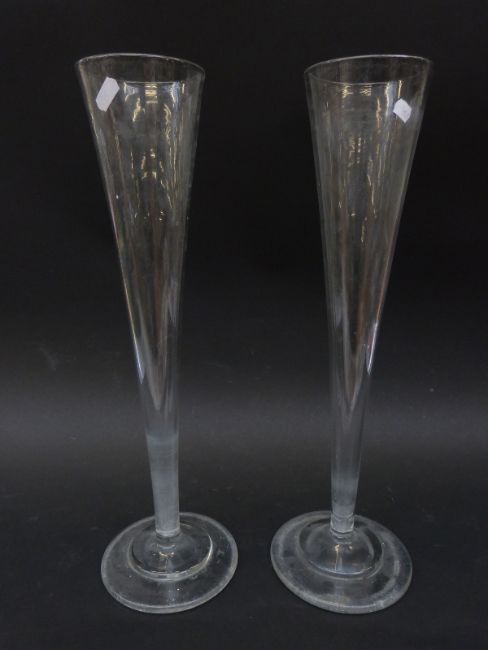 A pair of large glass trumpet vases, 48cm tall