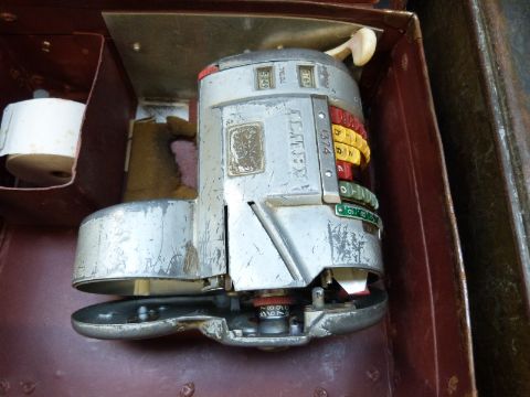 A Setright vintage ticket machine in box and an Almex example in case