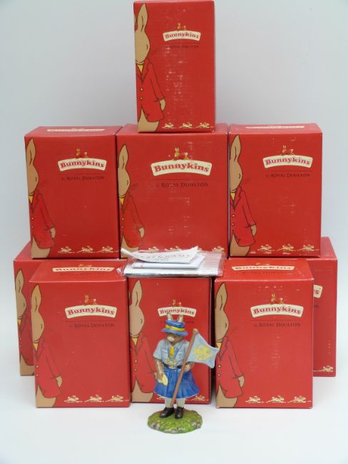 Royal Doulton Bunnykins figures including Pilot, Guide Leader, Barrister, Scout Leader, Fireman, Plumber, Nurse, Polly, Little Ballerina & On the Fairway, all boxed most with certificates