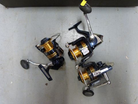 Six fixed spool fishing reels including Fladen, Vigor & Sweetfire