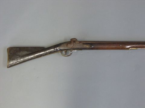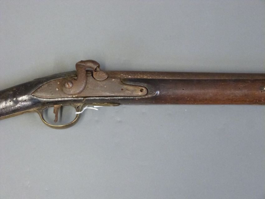 Percussion, converted from flintlock, hammer action Brown Bess gun with lock marked Tower and with crown over GR cypher, brass trigger, butt plate and mounts and 35inch barrel, overall length 130cm