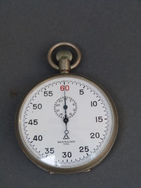 A stopwatch, the white enamel face with sub dial marked Herm Bark Kiel, bearing Nazi eagle verso over 'M' and numbered 10702