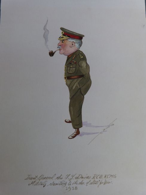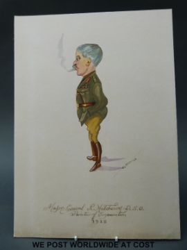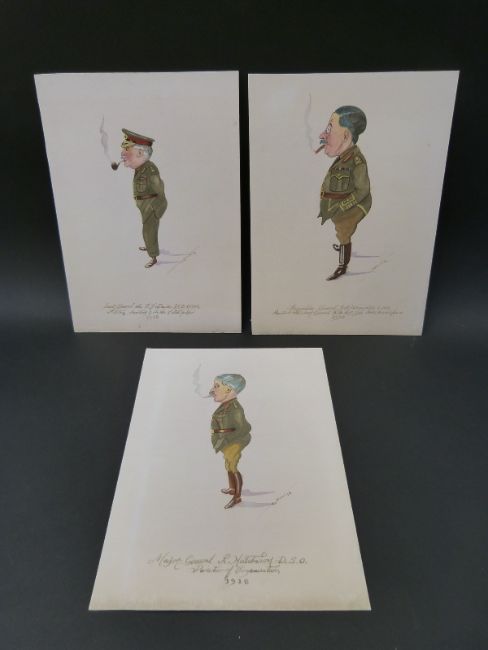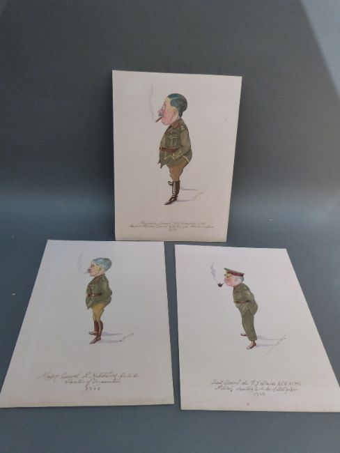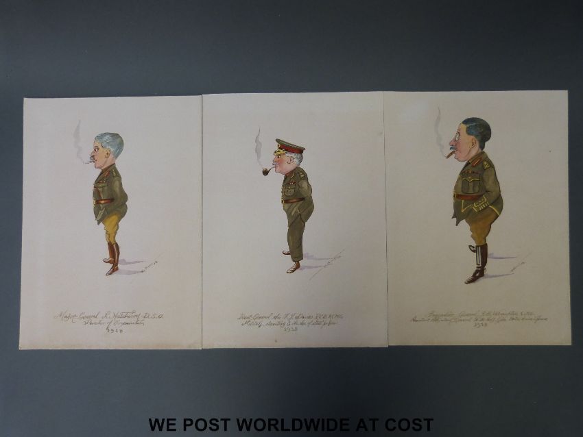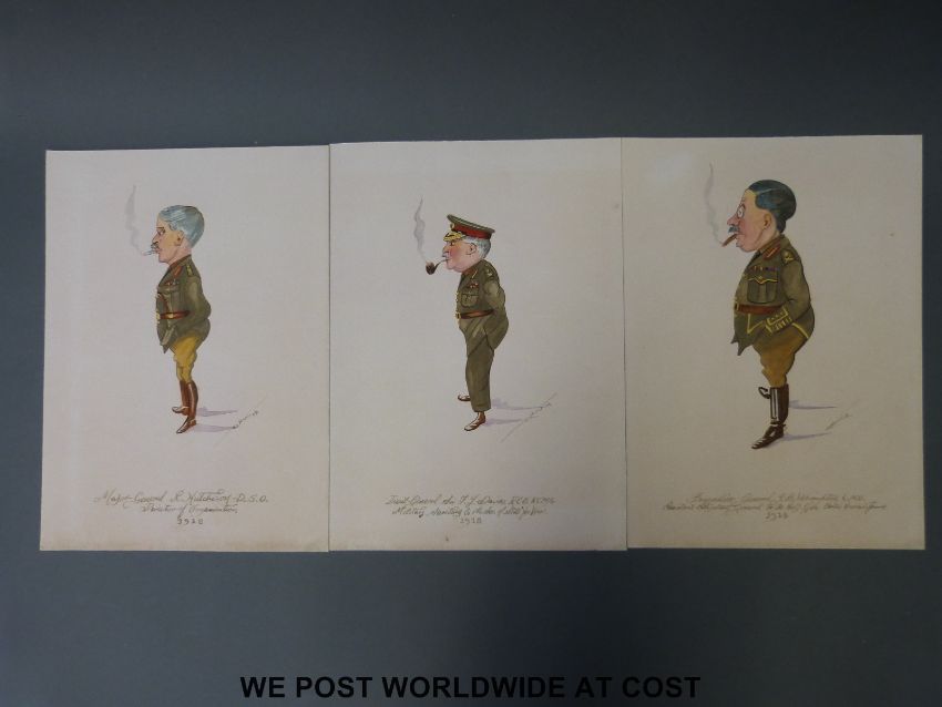 Three watercolour cartoon/caricatures of British generals dated 1918, each 32x23cm