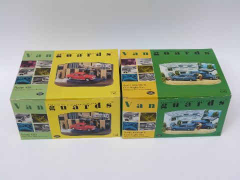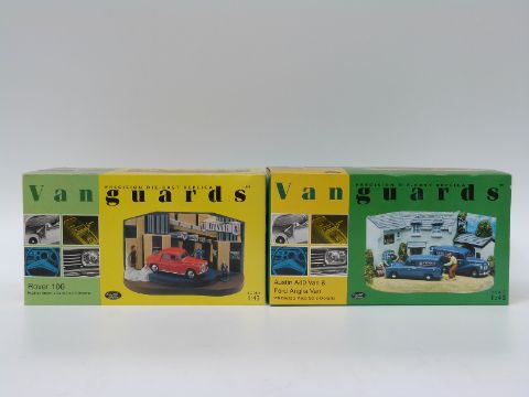 Two Vanguards diecast diorama models Rover 100 Heather Brown and Earls Court and Austin A40 Van & Ford Anglia Van Whitbread, both in original boxes