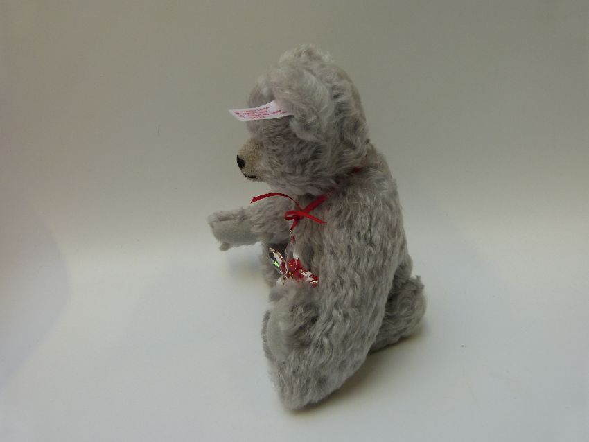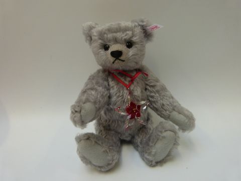 Steiff Original 'Poinsettia Swarovski' 681103 teddy bear 2007, with grey mohair, button to ear, tags and certificate 4124, 25cm tall, in original box