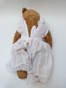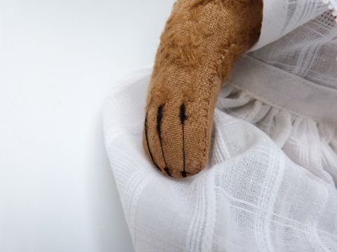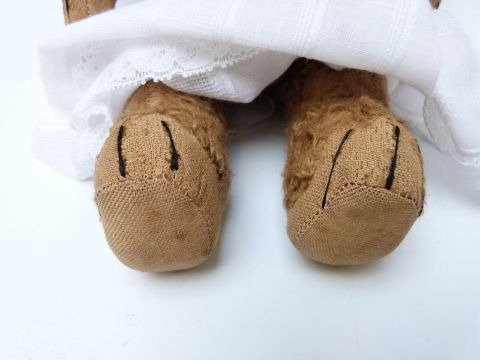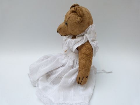 Blonde mohair teddy bear with hump back, central seam and jointed limbs, possibly Steiff, 29cm tall