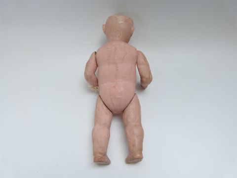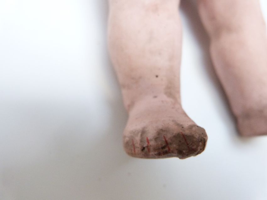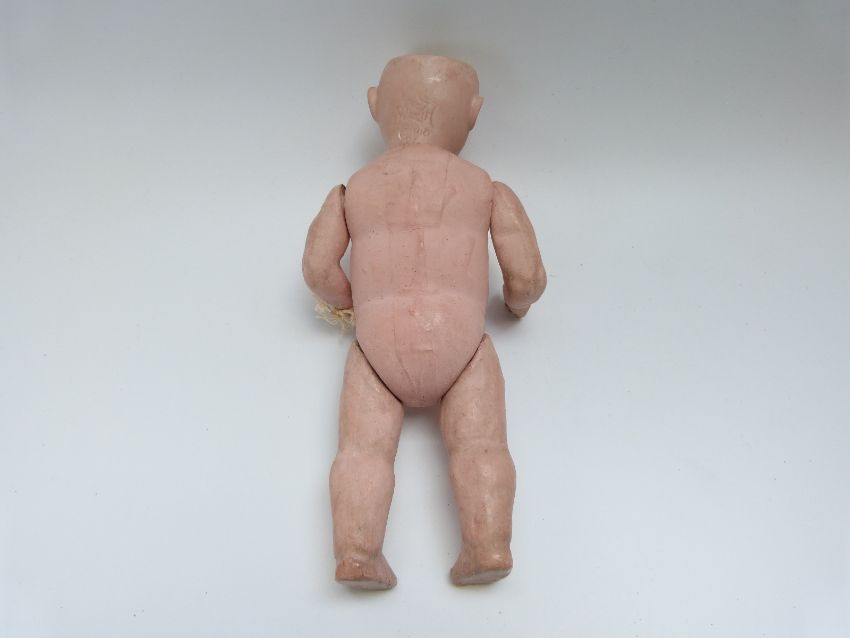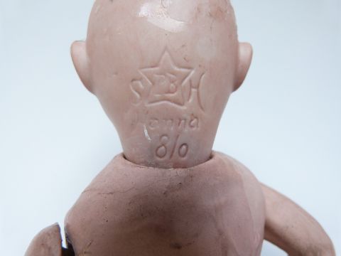 Simon & Halbig bisque headed doll with open mouth, weighted brown eyes and jointed composition body, marked to the back of the neck 'S PB in star H Hanna 8/0' 24cm tall
