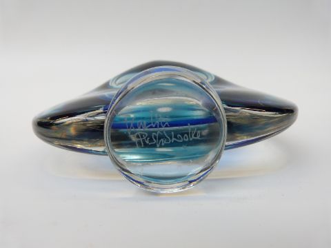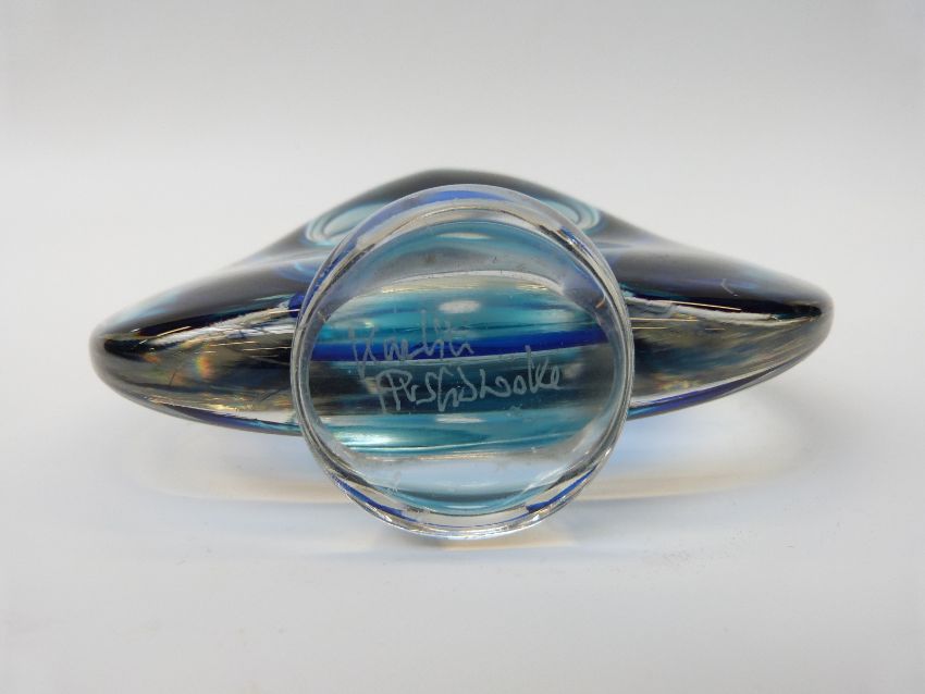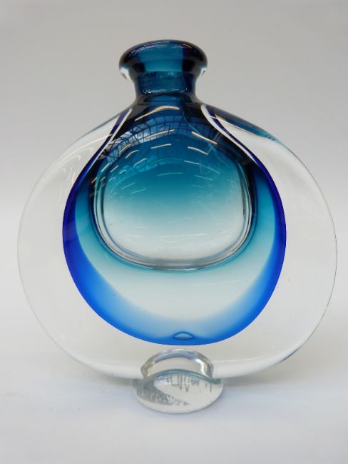 Murano Sommerso style glass vase with blue colouration, indistinctly signed to base, 15.5cm tall