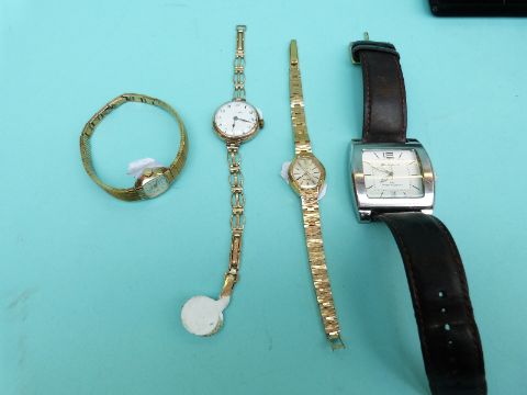 A silver curb link necklace and earrings, silver Wedgwood, 9ct gold ladies watch etc